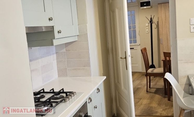 Az ingatlanba érve a hall-on keresztül érhető el a konyha-étkező, fürdőszoba, valamint a 3 szoba. A tágas, világos szobák dupla szárnyú ajtókkal összenyithatók. Konyha-étkező ablaka belső udvarra néz. A fürdőszobába zuhanykabin került beépítésre.
