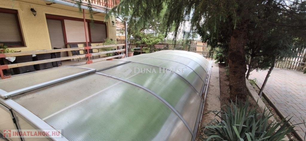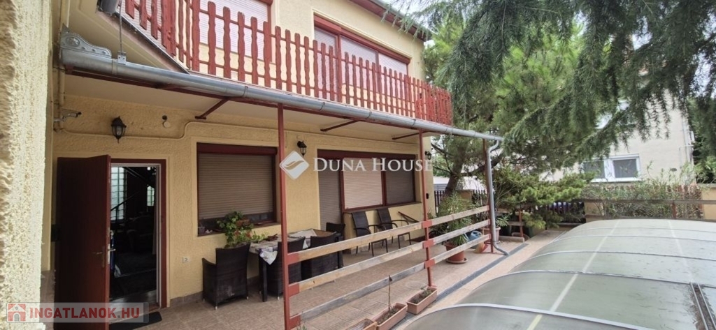 Hódmezővásárhely Kertvárosában, csendes utcában, igényes, emeletes családi ház parkosított kerttel és fűthető medencével eladó!Ez a dupla komfortos, 185 m²-es téglaépítésű otthon nagycsaládoknak vagy több generáció összeköltözésére is ideális választás.Az ingatlan 2018-ban teljes felújításon esett át, melynek során magas minőségű anyagok kerültek beépítésre.Elhelyezkedése kiváló: Szegedre közlekedő tram-train megállója. A Family Center autóval nagyon rövid idő alatt elérhető.Főbb jellemzők:Telek: 456 m²Lakótér: 185 m²Építés éve: 1980, felújítás: 2018Fa nyílászárók hőszigetelt üveggel, redőnnyelFűtés: gázkonvektor + 2 klímaRiasztórendszerFöldszint: 2 különnyíló szoba, nappali, étkező, konyha, kamra, fürdőszoba, külön WC, fedett teraszEmelet: 3 különnyíló szoba, nappali, kádas fürdőszoba, külön WC, télikert, teraszMelléképületek: garázs, tároló, nyári konyha, WCAz udvar térkövezett, gondozott és szép zöld övezetben lehet pihenni.Igazi kikapcsolódást kínál a fedett, fűthető, extrákkal felszerelt medence.Keressen bizalommal, és legyen Ön ennek a csodás családi háznak az új tulajdonosa