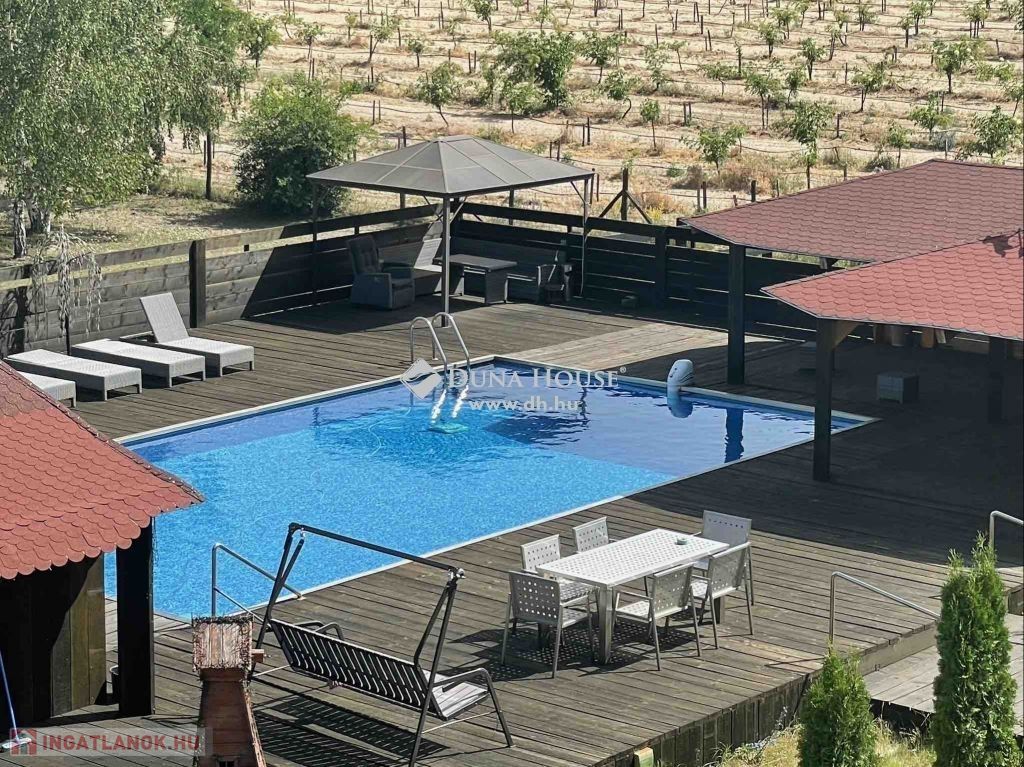 Külön exkluzív medencetér, pihenővel található. A medence vízellátása 100 méter mély kútból történik. Tisztító berendezéssel, napelemes fútéssel rendelkezik. A medence körülötti rész fával burkolt. Fedett külső, extra minőségű konyhával, zuhanyzórésszel és napozóterasszal kialakított. A medencetér 22 X 16,5 méter. A medence 12 X 6,5 méter területű, mely ellenáramű rendszerrel és világítással rendelkezik.