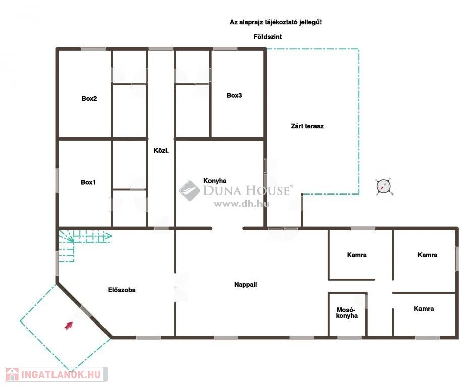 A birtokon található még 4 ló elhelyezésére alkalmas box, szénatároló és szabadtéri lóterület etetőtérrel.
