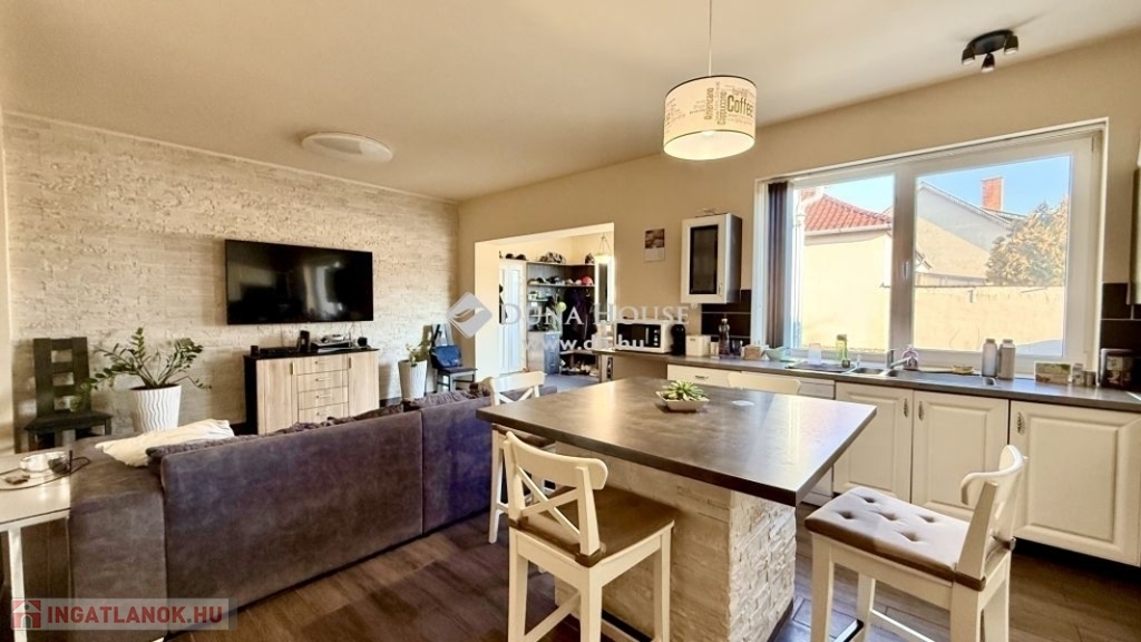 Kiszombor szívében igényesen felújított családi ház eladó! Ide tényleg csak költözni kell. Kiszombor központjában, Szegedtől mindössze 25 percnyi autóútra, Makótól alig pár perc távolságra található, ez a 855 m²-es telken elhelyezkedő 155 m²es frissen felújított családi ház. Ideális választás a város zajából kiköltöző nagycsaládosok vagy család alapítás előtt álló fiatal párok számára!Belépve a bejárati ajtón barátságos, ugyanakkor hatalmas amerikai konyhás nappali fogadja az ide érkezőt, ahonnan fényes folyosón keresztül jutunk el a 4 db külön nyíló hálószobáig. A folyosón található fürdőben kád és zuhanyzási lehetőség is ki lett alakítva. A fürdőszoba mellet kapott helyett egy másik külön álló wc és egy kamra is, ahol az épületet fűtő padlófűtést biztosító kondenzációs kazánt rejtették el a kíváncsiskodó szemek elől. A bejárati ajtón kívül két további lehetőségünk is van kijutni a nagy odafigyeléssel rendben tartott, parkosított udvarra, amit akár két teraszról is csodálhatunk. Az épületet a tulajdonos megbízásából gondosan kiválasztott, minőségi alapanyagokból újították fel 2020 nyarától A tetőszerkezett megerősítették, és a régi cserepeket új, időtálló betoncserepekre cserélték.A ház egésze famintázatú hidegburkolatot kapott. Az alacsony fűtésszámlát a hőszigetelt műanyag nyílászárók és az egész házat körülölelő 10 cm-es szigetelés garantálják. Az épület hűtését nagy teljesítményű, gazdaságos energia felhasználású klíma biztosítja a nyári meleg napokon, ami akár plusz fűtési lehetőség ként is tud funkcionálni a téli időszakban. A környék ellátottsága kiváló, buszmegálló, bevásárlási lehetőség, pékség, bolt és a közelben található játszótér egyben sportolási lehetőséget is biztosít. Pár perces sétával elérhető iskola, óvoda és orvosi rendelő is van a falusi CSOK, CSOK+-ra is alkalmas településen. A közösségi közlekedés sűrű és egészen kiváló környéken.Amennyiben felkeltette az érdeklődését, hívjon bizalommal!