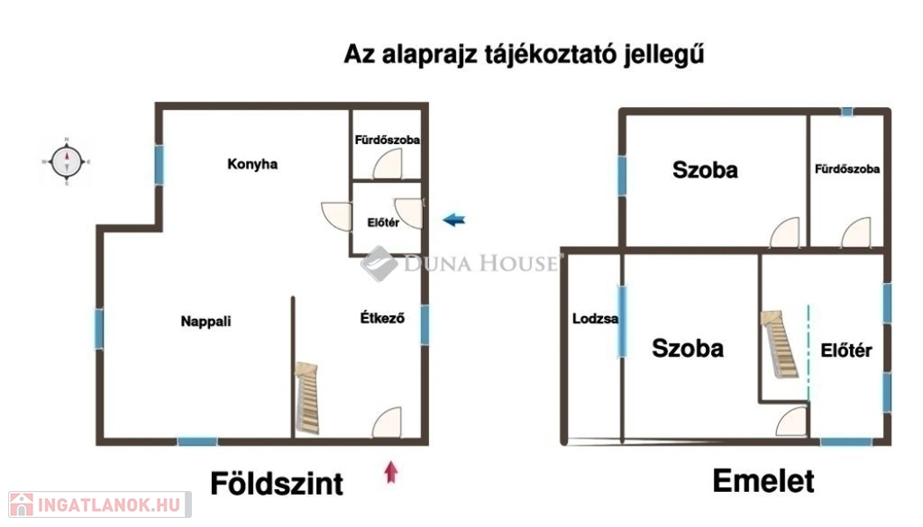 Az alsó szinten amerikai konyhás nappali, az emeleten 2 külön nyíló szoba és 2 fürdőszoba található./ a két szinten/