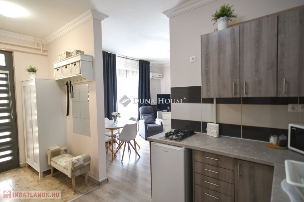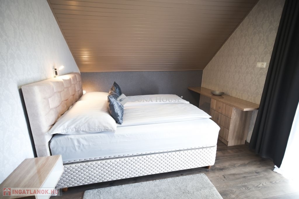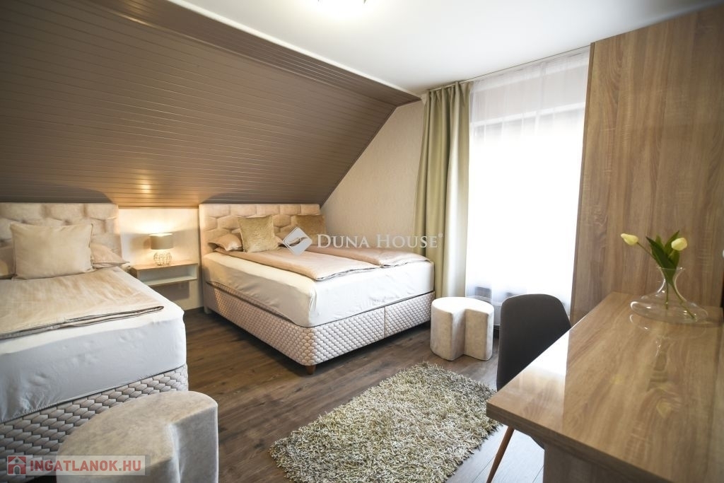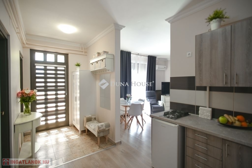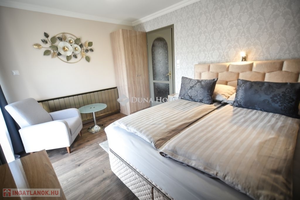 Eladó stílusosan kialakított apartmanház Mórahalmon, a fürdő közelében!Mórahalom egyik legkedveltebb részén, a Szent Erzsébet Gyógyfürdőtől mindössze néhány perc sétára, ugyanakkor csendes, nyugodt környezetben kínálunk megvételre egy kiváló állapotú, több lehetőséget is rejtő apartmanházat. Az ingatlan 661 négyzetméteres telken helyezkedik el, főépülete 140 négyzetméter alapterületű és kétszintes kialakítású. Itt három különálló, teljesen felszerelt apartman kapott helyet, melyeket ízléses, harmonikus enteriőr és magas színvonalú kivitelezés jellemez.A ház tulajdonosa kifogástalan állapotban adja át az ingatlant, amely a legnagyobb szállásportálokon közel maximális értékelésekkel szerepel. A meglévő, visszatérő vendégkör is átadható az új tulajdonos részére, így az apartmanház azonnal továbbüzemeltethető és biztos bevételi forrást jelenthet. Ezáltal nemcsak igényes otthonként, hanem befektetésként is kiváló választás.Az ingatlan gondozott, zöld környezetben fekszik, az utcafronti és belső udvari kertrészeket automata öntözőrendszer szolgálja ki. A kényelmet elektromos kapu, telefonhívásra csatlakozó kapucsengő és kamerás biztonsági rendszer is fokozza. A napelemes rendszerhez való csatlakozás előkészítve rendelkezésre áll. A zárt belső udvarban több autó számára is van kényelmes parkolási lehetőség.A különálló, 80 négyzetméteres melléképület jelenleg irodaként, mosókonyhaként és garázsként funkcionál, de kialakítása révén akár további apartmanok is létrehozhatók benne, ami még vonzóbbá teszi az ingatlant befektetési szempontból is.Ez az apartmanház különösen ajánlott azok számára, akik igényes, azonnal működtethető szálláshelyet keresnek Mórahalom egyik legdinamikusabban fejlődő részén. Ugyanakkor kiváló lehetőség lehet nagycsaládosok, többgenerációs együttélésre vágyók vagy vállalkozást indítani kívánók számára is.További információért vagy megtekintésért keressen bizalommal!