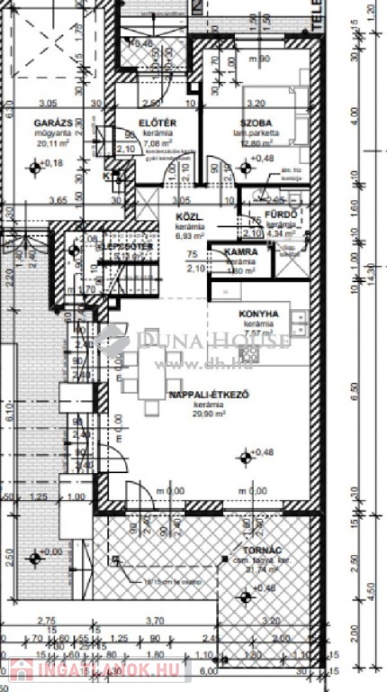 Napfényes amerikai konyhás nappali (37,47nm) szoba, fürdőszoba, kamra, előtér, fedett nagyméretű terasz.