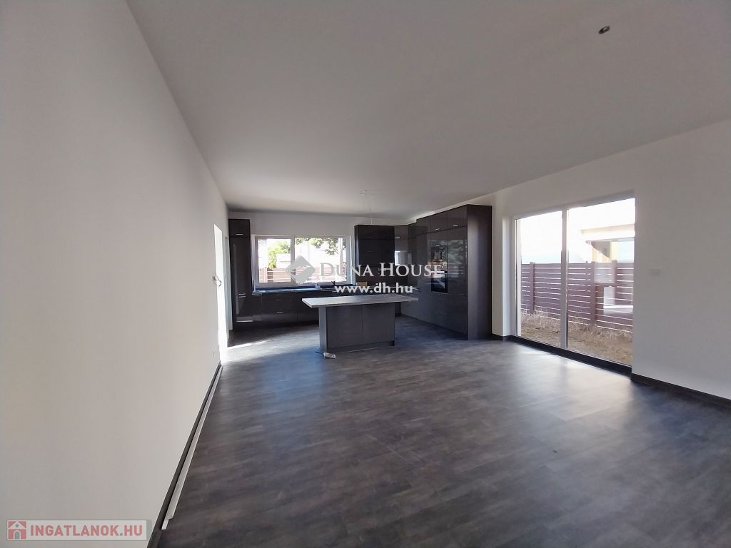 Az előkertes ház 184 m2-es telken épül, ahol amerikai konyha + nappali, 5 szoba, 2 fürdő, 2 toalett, kamra, loggia és terasz kerül kialakításra 96 m2-es saját kertkapcsolattal.