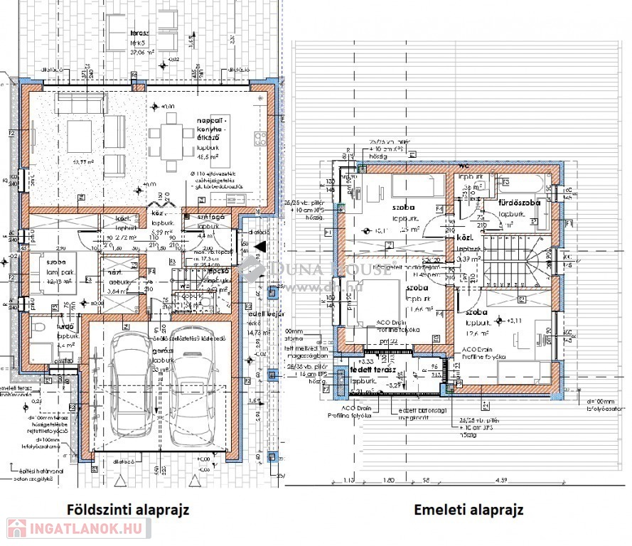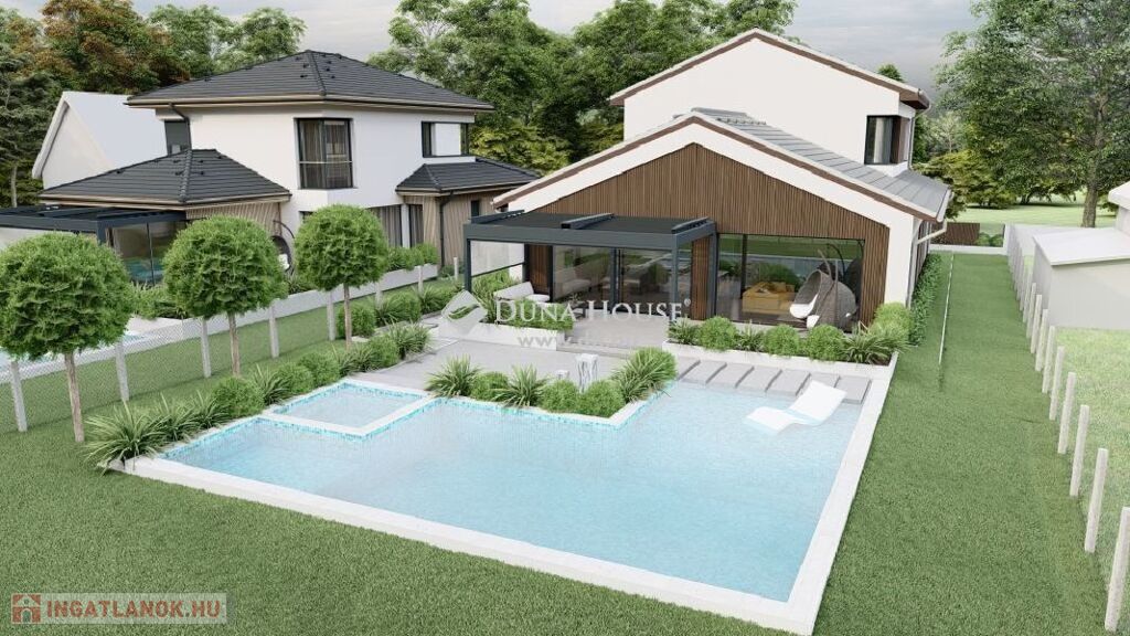 Szeged-Marostő részén, új építésű, egyedi tervezésű, két szintes, nappali+amerikai konyha + 4 szobás, minőségi családi ház eladó, akár kulcsrakész állapotban! A 203 hasznos négyzetméterrel rendelkező lakóingatlan Szeged városának Marostő részén - Szeged úgynevezett Rózsadombján - került megépítésre egy 753 négyzetméteres telken. A városrész jellegzetessége, hogy a környék nagyon szép, igényes, új építésű házakkal van tarkítva.A duplakomfortos ház két szintet kapott, a helyiségek az alábbiak szerint lettek kialakítva:Földszint: Nappali+amerikai konyha (48,50 négyzetméter)Szoba (12,18 négyzetméter)Fürdőszoba+WC - Tusolóval (4,40 négyzetméter)WC (1,56 négyzetméter)Háztartási helyiség (3,84 négyzetméter)Közlekedő (5,99 négyzetméter)Közlekedő (2,72 négyzetméter)Lépcsőtér (2,91 négyzetméter)Szélfogó (4,40 négyzetméter)Kétállásos garázs (33 négyzetméter)Fedett bejáró (14,78 négyzetméter)Terasz (37,06 négyzetméter)Emelet:Szoba (12,60 négyzetméter)Szoba (11,66 négyzetméter)Szoba (11,29 négyzetméter)Fürdőszoba - Fürdőkáddal (5 négyzetméter)WC (1,35 négyzetméter)Közlekedő (6,30 négyzetméter)Fedett terasz (5,31 négyzetméter)Lévén, hogy új építésű házról van szó, említést érdemel a 30 centiméter vastag vázkerámia főfalazat, a földrengésbiztos vasbeton födém (az első szint esetében). Az EPS homlokzati, az XPS vasbeton koszorú és kőzetgyapot födém szigetelés felel a kiváló energetikáért. A téli fűtésről és nyári hűtésről hőszivattyú gondoskodik, padlófűtéses hőleadással. A nyári forróság elkerüléséért a mennyezeti hűtési rendszer felel. Kiemelendő még, hogy a hűtést-fűtést szabályzó GNBS elektronika is betelepítésre kerül, így akár laptopról, telefonról is gondoskodni lehet a ház éppen megfelelő hőmérsékletéről. A garázsba elektromos autók számára töltőállomás létesítése is megtörténik.Több készültségi fokozatban is megvásárolható az ingatlan, ezek különböző tartalmi, felszereltségi és anyagi vonzattal bírnak:Emelt szintű szerkezetkész állapot tartalma, felszereltsége: Elektromos hálózat kiépítése riasztórendszerrel együtt (gyenge áram), szerelvények nélkül, falak két sorral történő glettelése, egy sorral történő fehérre festése, hőszivattyú betelepítése, padlófűtési és mennyezet hűtési rendszer kiépítése + NGBS elektronika, továbbá elektromos, okos motorral felszerelt árnyékolás (redőnyök, zsalúziák).Ára: 215.391.500 HUF.Kulcsrakész állapot tartalma, felszereltsége: Beltéri ajtók 150.000 HUF értékben, hideg-és melegburkolatok, azok szakszerű lehelyezése 8000 HUF/négyzetméteres értékhatárig, villanyszerelvények egyeztetett árig + alap riasztó rendszer, szaniterek egyeztetett árig. Udvar tereprendezése, azon belül térburkolás a garázsbejárónál és az ajtóban. (A látványterven szereplő medence kiépítése extra anyagi vonzattal bír).Ára: 233.879.500 HUFA szóban lévő ingatlan 1 kilométeres vonzáskörzetében óvoda, iskola, bevásárló centrum, valamint sportközpont, mind egyaránt megtalálható. Elsősorban a magas minőséget kedvelő, nagyobb családok számára ajánlom! A képek a kivitelezésről folyamatosan frissülnek. Addig is bármilyen kérdés esetén, kérem forduljon hozzám bizalommal!