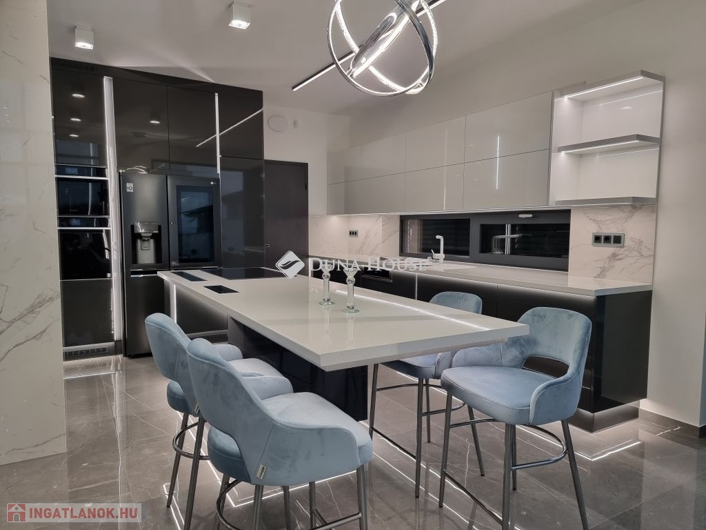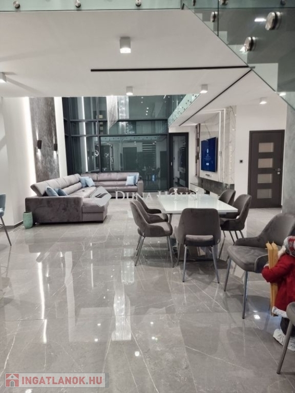 A Liliom Lakóparkban eladó egy 2021-ben épült, közel 400 m²-es, két szintes panorámás villa, prémium anyagokkal és modern technológiával.