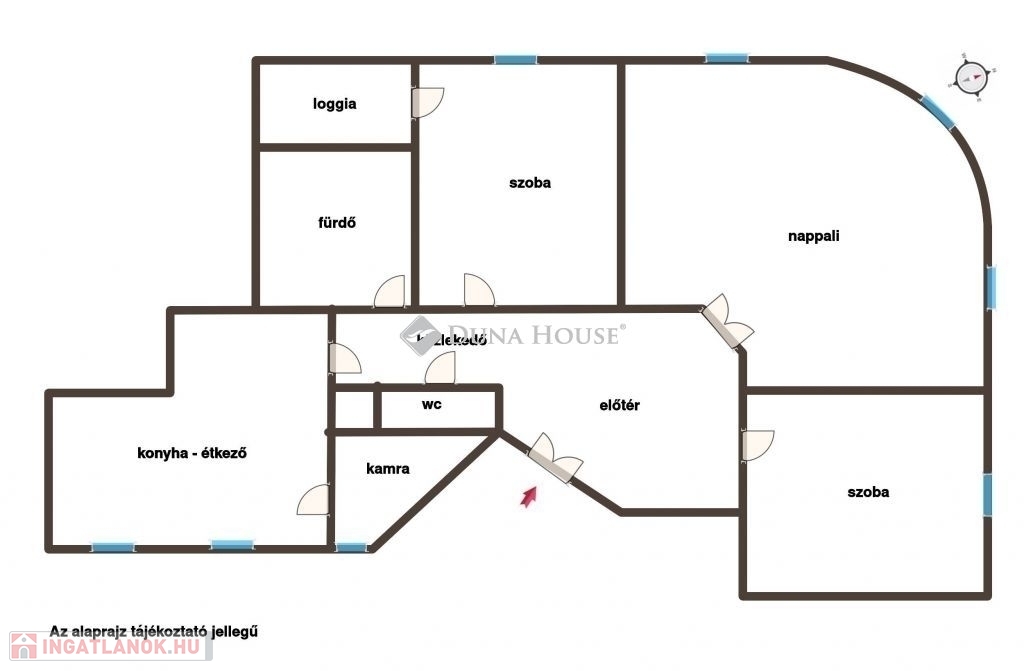 A nappalitól jobbra és balra nyílik a két szoba. Egyikből a hangulatos loggia érhető el.
