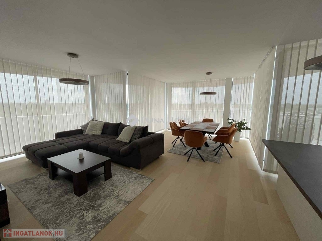 A lakás tágas nagy terekkel rendelkezik, a térhatást tovább növeli, a terasz felől lévő hatalmas, teljes falas üvegfelület.
