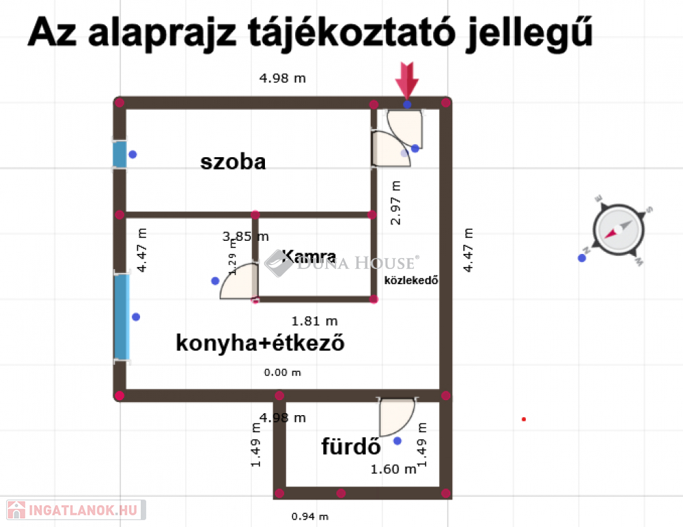 A lakásban nagyméretű ablakok biztosítják a természetes fényt, így minden helyiség világos és barátságos.